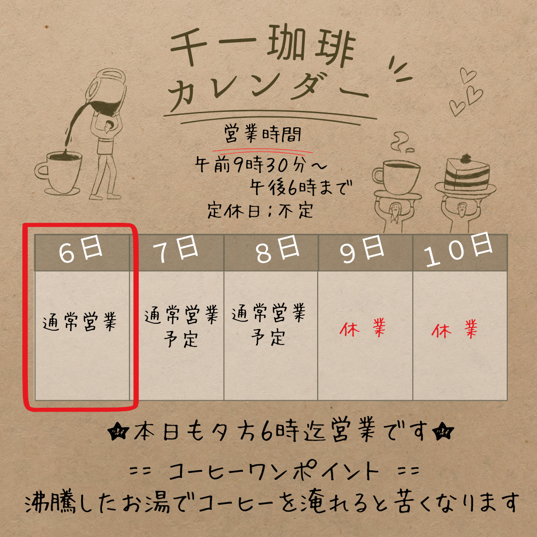 2025年1月6日 2025/1/6(月) 本日も夕方6時迄営業!! おはようございます🌞!晴れの鶴岡です☀️。最近、冬に晴れるのも珍しくなくなってきましたね😊。 ☕️ コーヒーワンポイント ☕️沸騰したお湯でコーヒーを淹れると、苦みが強くなりすぎてしまうことがあります。少し冷ましたお湯で淹れるのがおすすめです✨。 本日も夕方6時まで営業しております!ぜひお立ち寄りください😊。 岡部千信 千一珈琲の店主
