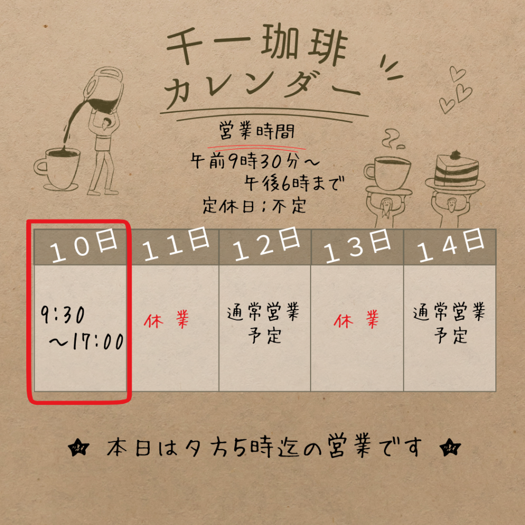 2025年2月10日 2025/2/10(月) 本日は夕方5時迄の営業です 🌞 おはようございます! 🌞 📢 お知らせ 📢本日は 夕方5時までの営業 となります☕️✨。 いつもより少し早めの閉店となりますので、お買い求めの方はお早めにどうぞ🏃💨。寒い日が続きますが、温かいコーヒーでほっとひと息つきませんか?😊✨ 皆さまのご来店を心よりお待ちしております! 岡部千信 千一珈琲の店主