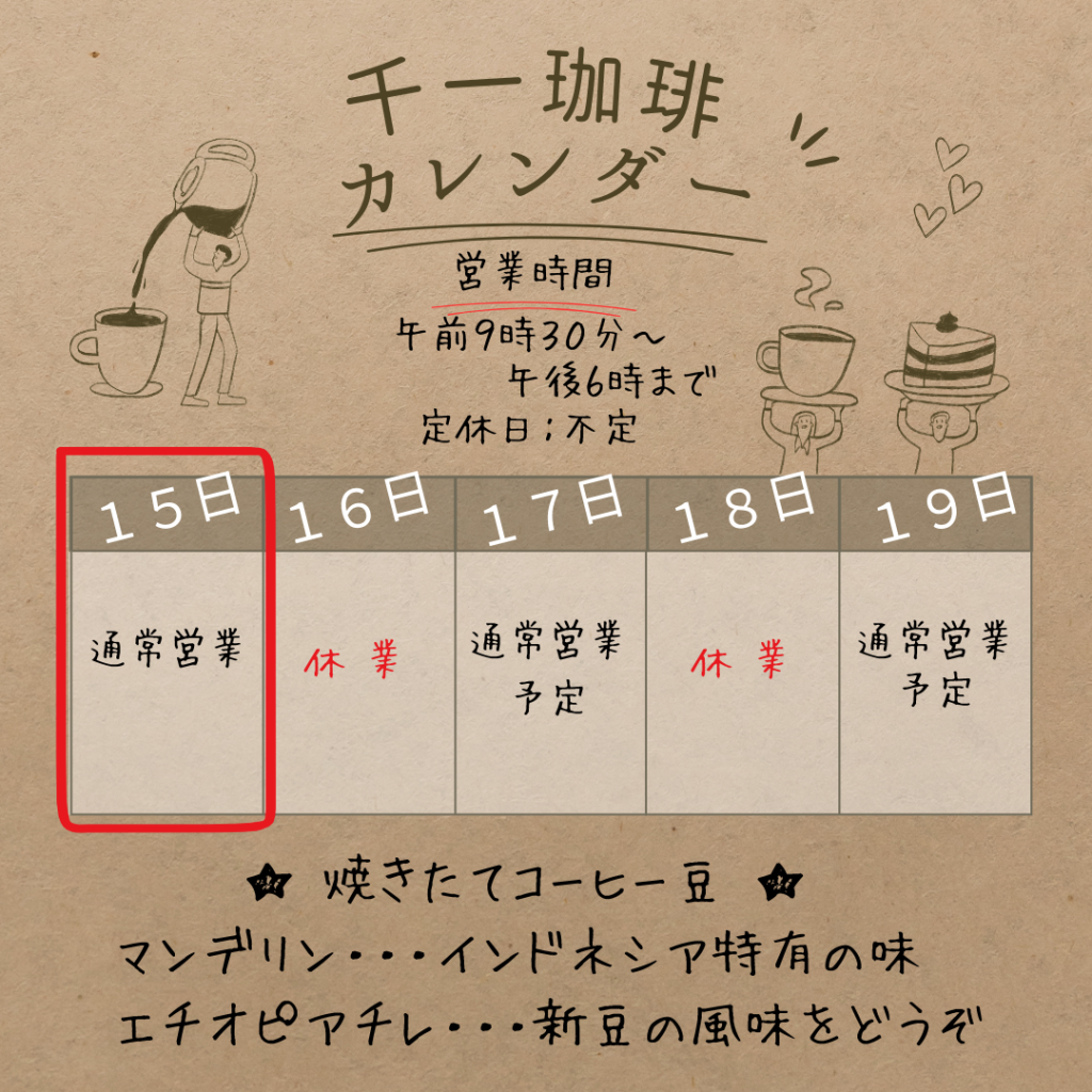 2025年2月15日 2025/2/15(土) 夕方6時迄営業 🌞 おはようございます! 🌞 🔥 本日の焼きたてコーヒー豆 🔥🇮🇩 インドネシア・マンデリン:深いコクとスパイシーな風味が魅力の力強い一杯☕️✨。🇪🇹 エチオピア・チレ:フルーティーで華やかな香り、滑らかな口当たりの上品な味わい🍇。 本日も 夕方6時まで営業 しております!ぜひ焙煎したてのコーヒーをお楽しみください😊。 岡部千信 千一珈琲の店主