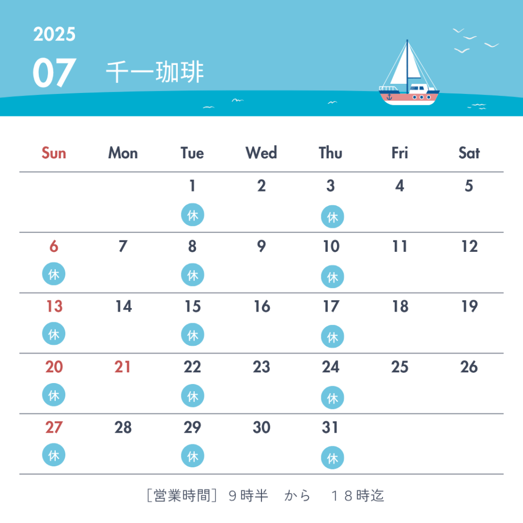 2025年7月3日 7月の千一珈琲の営業は、月・水・金・土曜となります おはようございます! 本日、7/3(木)はお休みです🙏 7月の千一珈琲の営業は、月・水・金・土曜となります🗓️ 最新情報はSNSでご確認くださいね! #千一珈琲 #鶴岡 #本日休業 #営業案内 #定休日 岡部千信 千一珈琲の店主