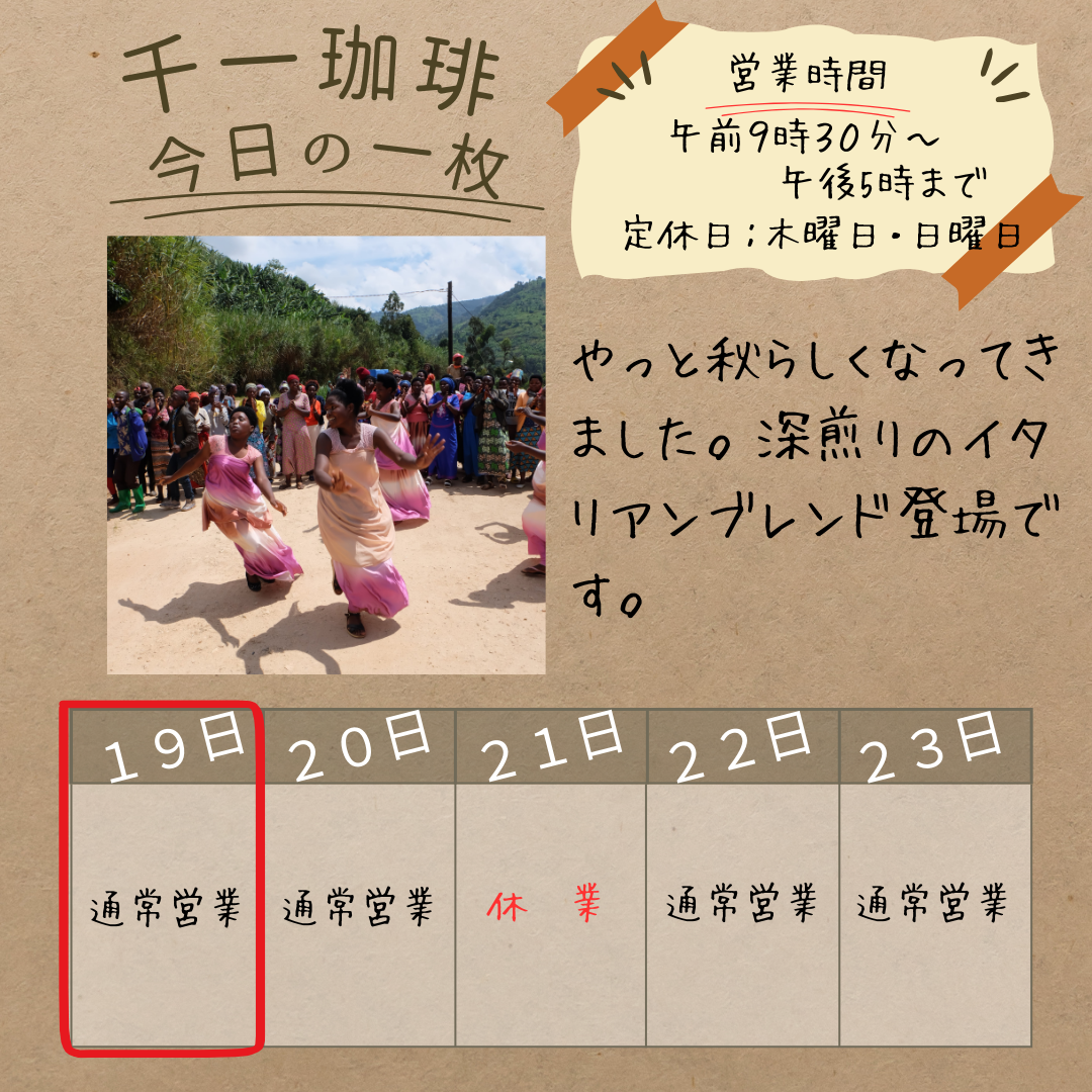 2025年9月19日 9/19(金)おはようございます! 本日も〜17時営業です! 9/19(金)おはようございます! 本日も〜17時営業です! 秋の訪れを感じる涼しい日ですね🍂 コク深い「深煎りイタリアンブレンド」と、ケーキなどのお供に最高です! ご来店お待ちしてます! #千一珈琲 #鶴岡市 #自家焙煎 #新商品 #コーヒーとケーキ 岡部千信 千一珈琲の店主