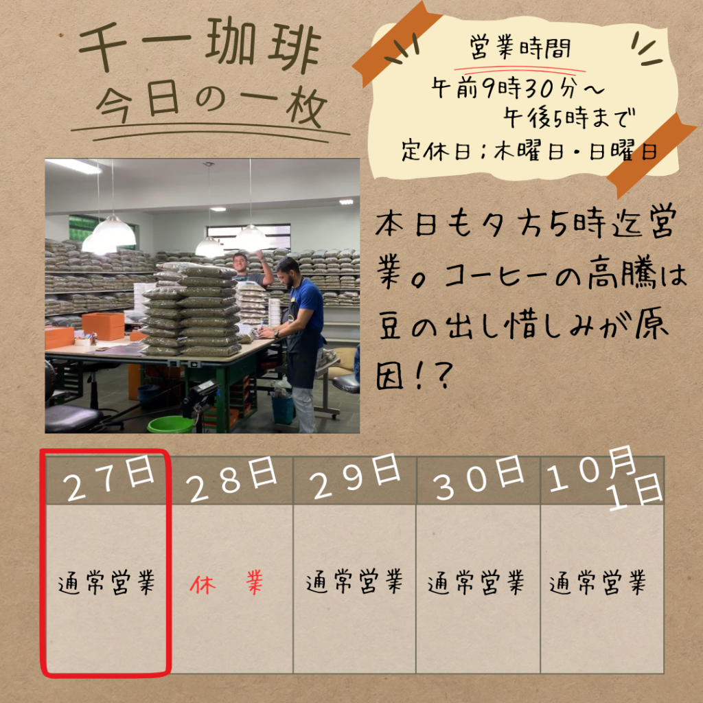 2025年9月27日 ブラジルコーヒー高騰の裏側には、農家の「出し惜しみ」も?🤔 おはようございます!☀️本日、9/27(土)も9:30〜17:00営業です!ブラジルコーヒー高騰の裏側には、農家の「出し惜しみ」も?🤔「アメリカが買わなくても、中国・ロシア・インドに売ればいい」と強気な姿勢のようです。産地の力を実感しますね。 岡部千信 千一珈琲の店主
