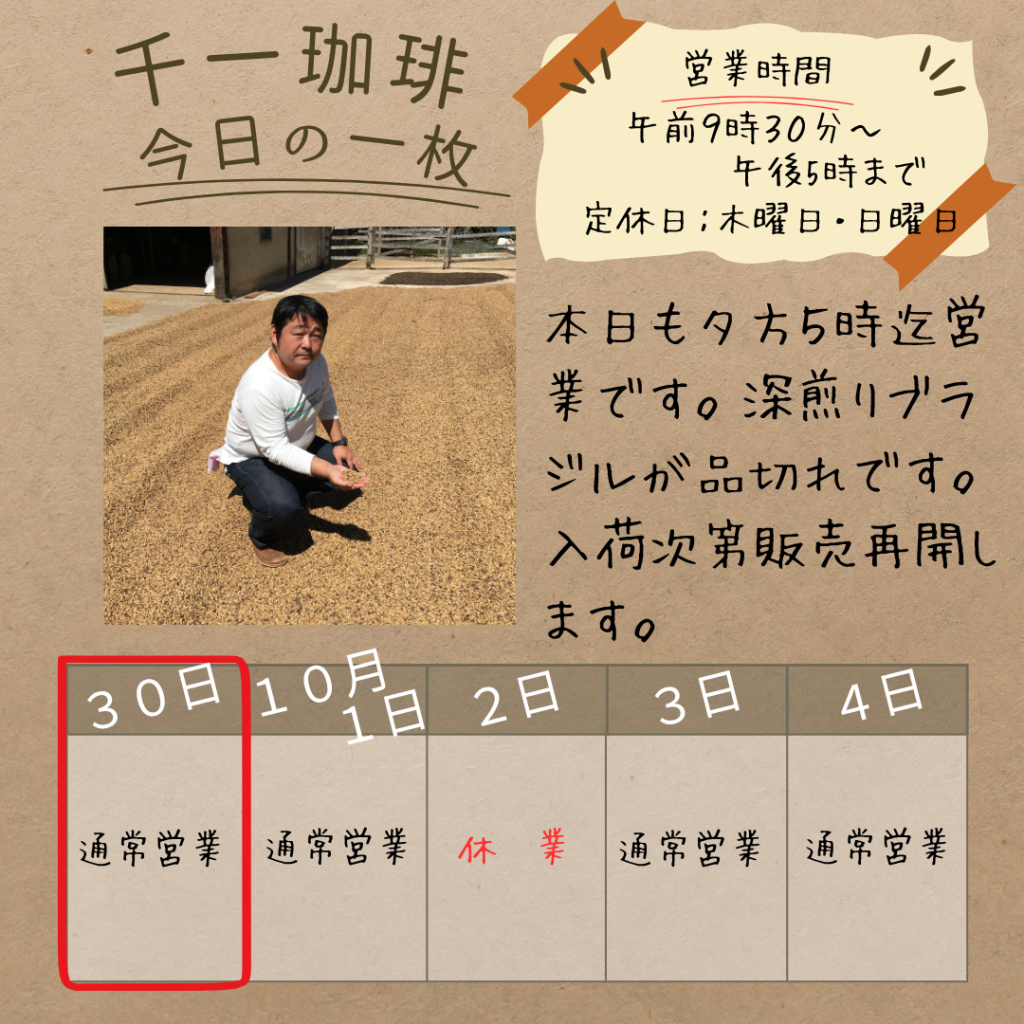 2025年9月30日 人気No.1の深煎りブラジルが一時品切れです。次回は価格改定となります。 9/30(火)おはようございます! 本日も〜17時営業です! 人気No.1の深煎りブラジルが一時品切れです。次回は価格改定となります。 アフリカ系など多彩なラインナップでお待ちしておりますので、ぜひご検討ください☕️ 岡部千信 千一珈琲の店主