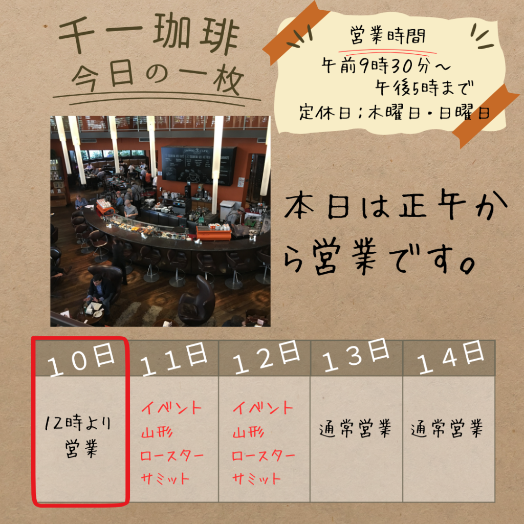 2025年10月10日 ☀️ 本日、10/10(金)は正午12時からの営業です☕️ おはようございます!☀️ 本日、10/10(金)は正午12時からの営業です☕️ 閉店は夕方5時までとなります。 ご不便をおかけしますが、よろしくお願いします。 岡部千信 千一珈琲の店主