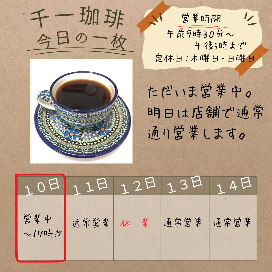 2025年10月10日 千一珈琲は明日10/12(日)店舗で通常営業いたします! 現在、夕方5時まで営業中です!【重要】明日開催予定の「山形ロースターサミット」は悪天候のため中止となりました☔️つきましては、千一珈琲は明日10/12(日)店舗で通常営業いたします!ご来店お待ちしております☕️ 岡部千信 千一珈琲の店主