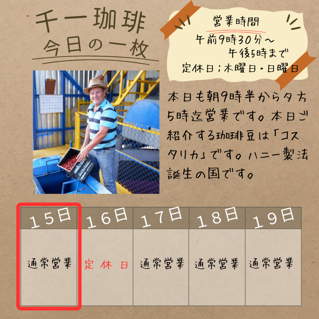 本日ご紹介する珈琲豆は**「コスタリカ」**です。