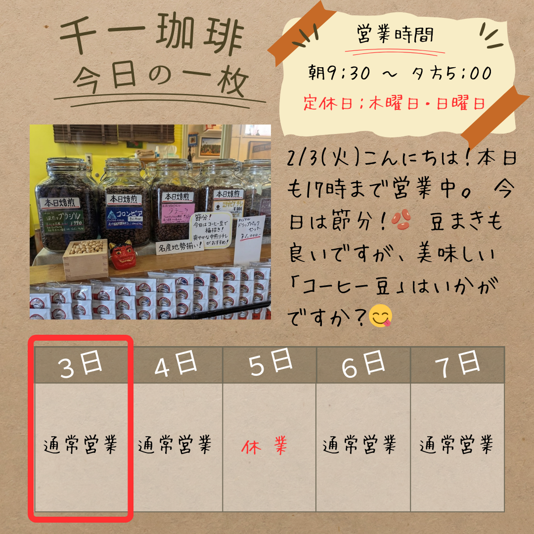 こんにちは! 2月3日(火)、本日は節分ですね👹🫘 「鬼は外、福は内!」 豆まきの豆も良いですが、美味しい「コーヒー豆」で福を呼び込みませんか?